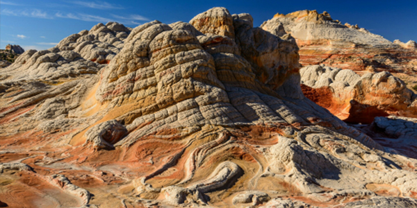 After breakfast, we travel by 4WD vehicle to White Pocket, an otherworldly sandstone wonderland within Vermilion Cliffs National Monument. Known for its swirling rock patterns and vivid color palette, White Pocket offers endless photo opportunities and exploration without crowds. We’ll spend the day exploring 4–6 miles of open slickrock terrain with gentle elevation changes (~200–450 feet). The drive takes about 1.5 hours each way depending on road conditions. After returning to camp, enjoy free time to relax before a festive closing dinner and fire circle under the stars.